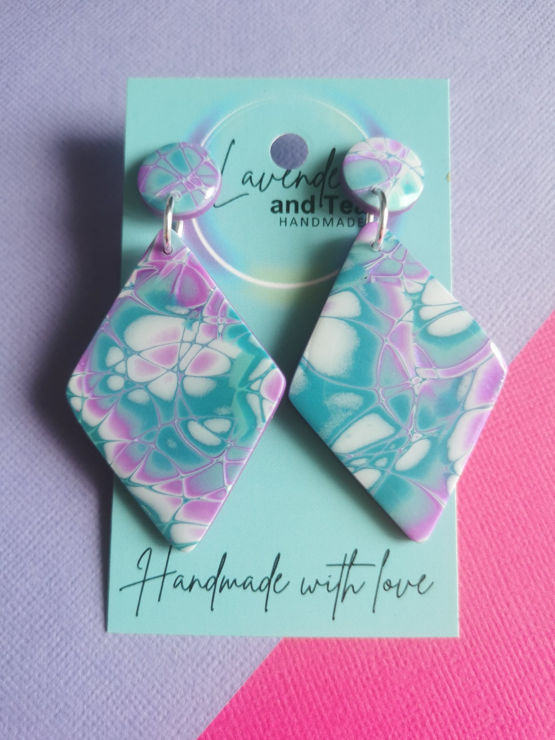 These bright earrings are made using a technique called Mokume Gane, which give a unique pattern, and no pair are the same.