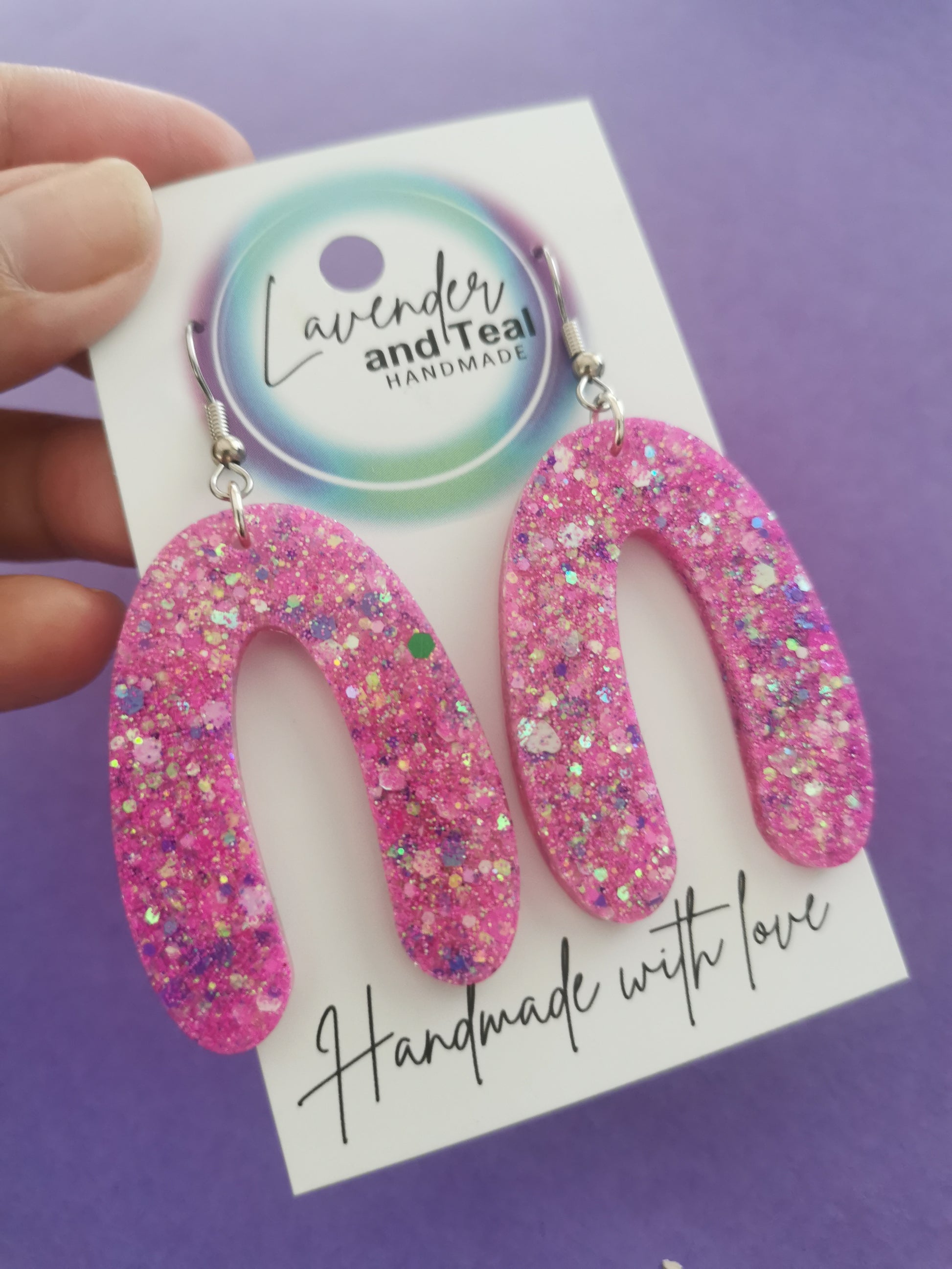 Pink Glittery Resin Arch Earrings